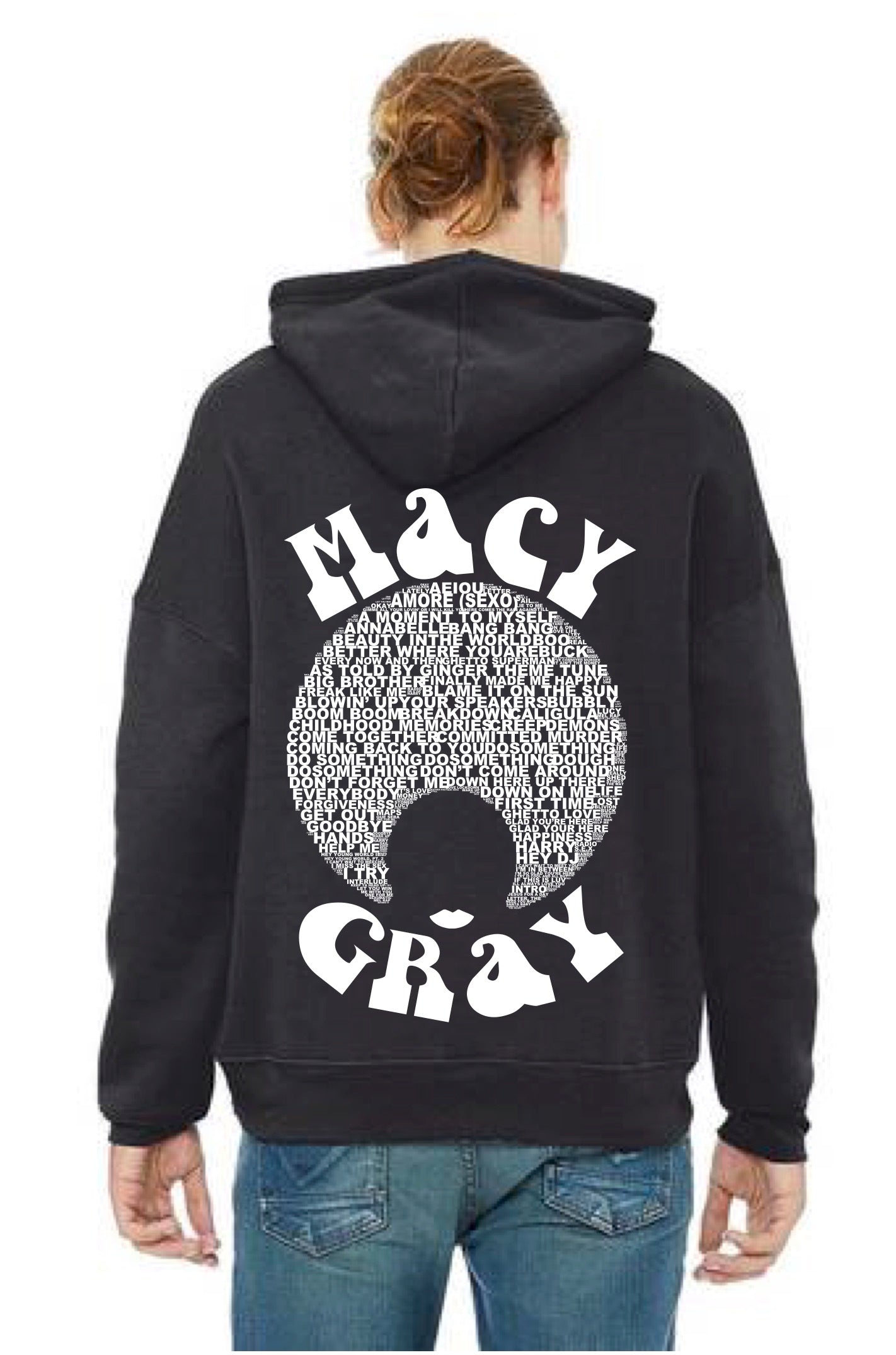Meet our BEST SELLER online and on tour - THE SONG HEADS a logo on the back featuring some of MG's most famous lyrics.